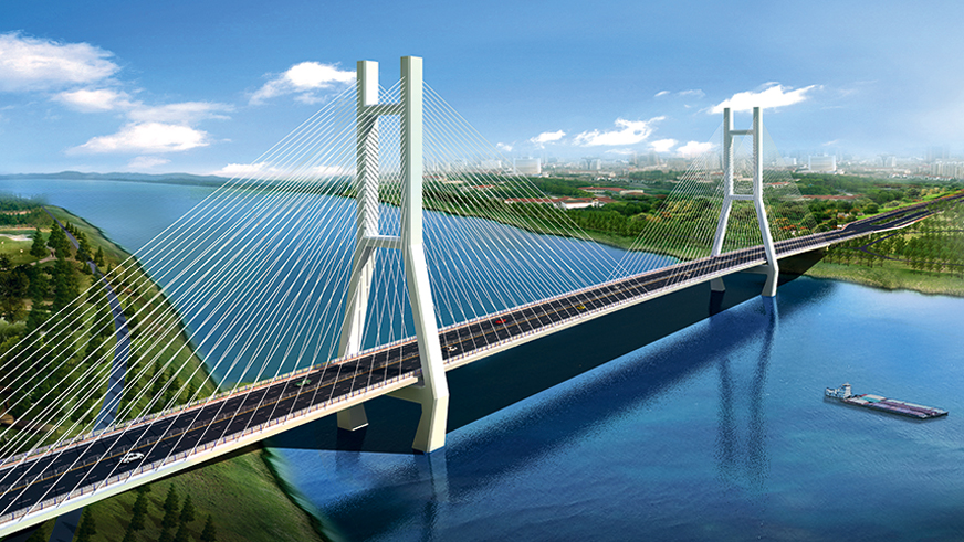 濟(jì)南黃河公路大橋采用雙塔雙索面等高鋼桁架斜拉橋結(jié)構(gòu)形式,全長 1028 米,主跨 488 米,主塔高 168 米,主梁采用整體式鋼桁梁斷面,上下兩層,上層橋面為雙向八車道公路橋面,下層為雙線軌道橋面。濟(jì)南黃河公路大橋是貫徹落實(shí)黃河流域生態(tài)保護(hù)和高質(zhì)量發(fā)展的國家戰(zhàn)略深入實(shí)施的重大項目,是加快濟(jì)南“擁河發(fā)展”、奮力開啟“黃河時代”的重要保障。